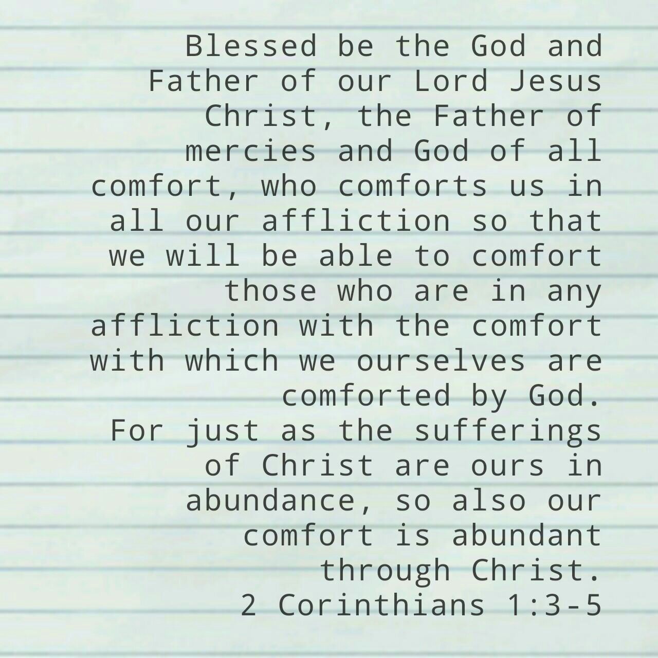 I don’t like death, grief, sorrow…my family and I know it all to well. My Daddy being the latest. It hurts. But grief, sorrow, death has another side to it as well…the comfort of God that is truly unique, deep, precious, strengthening, and we’ll…comforting. I try to describe the comfort that God gives, but really I do it no justice. It is something that is only experienced.