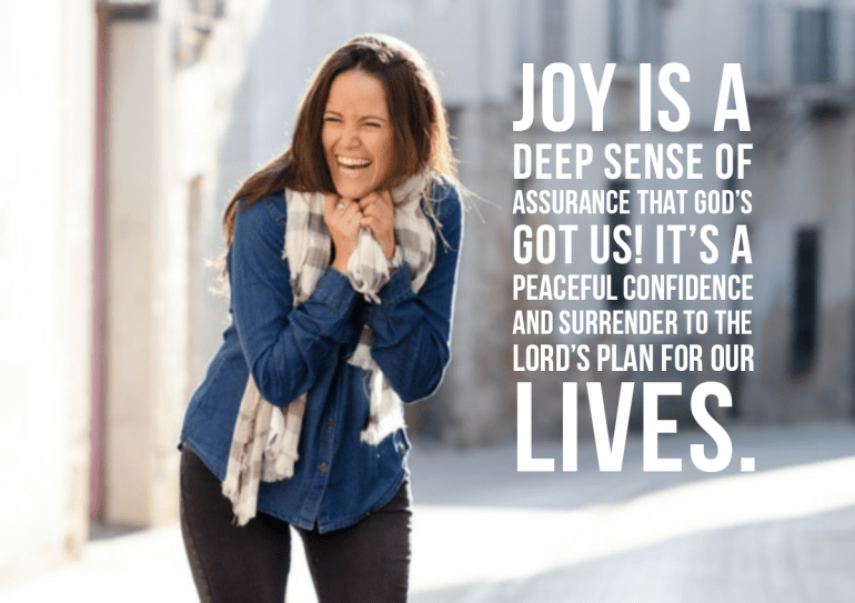 - Joy is a deep sense of assurance that God’s got us! It’s a peaceful confidence and surrender to the Lord’s plan for our lives.