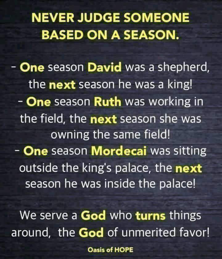 Whatever season of life you find yourself in, God is with you! Keep the FAITH, trust Him. God’s got your back! He loves you!