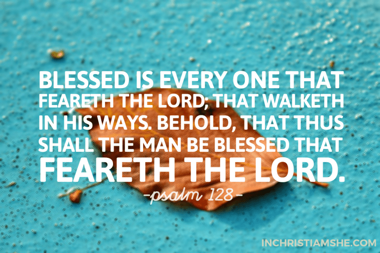 “Blessed is every one that feareth the Lord; that walketh in His ways. For thou shalt eat the labour of thine hands: happy shalt thou be, and it shall be well with thee. Thy wife shall be as a fruitful vine by the sides of thine house: thy children like olive plants round about thy table. Behold, that thus shall the man be blessed that feareth the Lord. The Lord shall bless thee out of Zion: and thou shalt see the good of Jerusalem all the days of thy life. Yea, thou shalt see thy children’s children, and peace upon Israel.“
