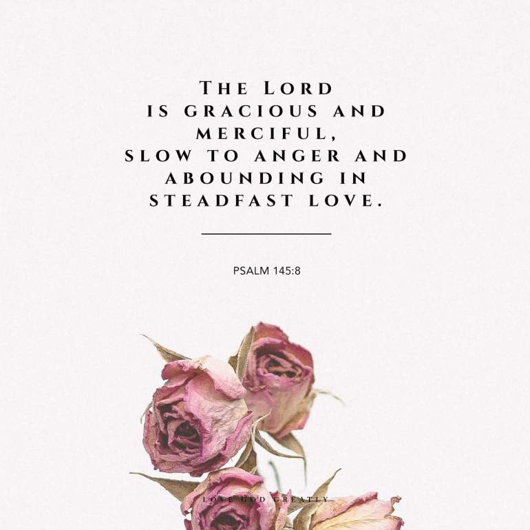 This is such a great verse, isn’t it! Wow! I am so thankful the Lord is gracious, merciful, slow to anger with me and that His love is steadfast…it never changes.