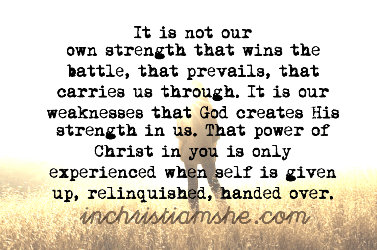 In 2 Corinthians 12:8-10 Paul wrote about this very thing. He knew it too, “For this thing I besought the Lord thrice, that it might depart from me. And He (God) said unto me, My grace is sufficient for thee: for my strength is made perfect in weakness. Most gladly therefore will I rather glory in my infirmities, that the power of Christ may rest upon me. Therefore I take pleasure in infirmities, in reproaches, in necessities, in persecutions, in distresses for Christ’s sake: for when I am weak, then am I strong.“