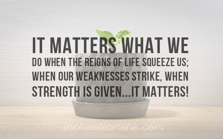 It matters what we do when the reigns of life squeeze us; when our weaknesses strike, when strength is given…it matters!