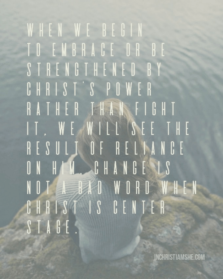 When we begin to embrace or be strengthened by Christ’s power rather than fight it, we will see the result of reliance on Him. Change is not a bad word when Christ is center stage.