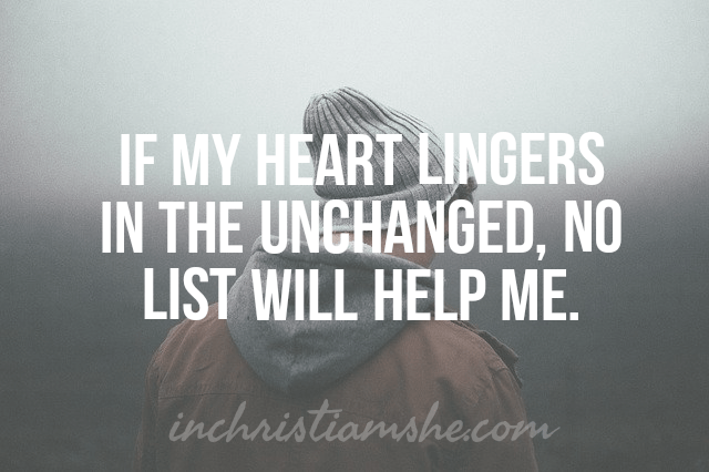Today’s devotional from New Morning Mercies by Paul David Tripp was on the topic of change. Funny how timely this is with 2021 right around the corner. Over the years, I have read numerous articles on the topic of “New Year resolutions” – you know the do’s and the don’ts and the how-to’s, but so often that is actually what they are – a list. Now don’t get me wrong, it is not that “lists” are bad – I create them weekly to help me stay focused and accomplish tasks throughout the week – the problem is an unchanged heart. Our root problem isn’t lists, it is my unchanged heart issues. If my heart lingers in the unchanged, no list will help me…or you.